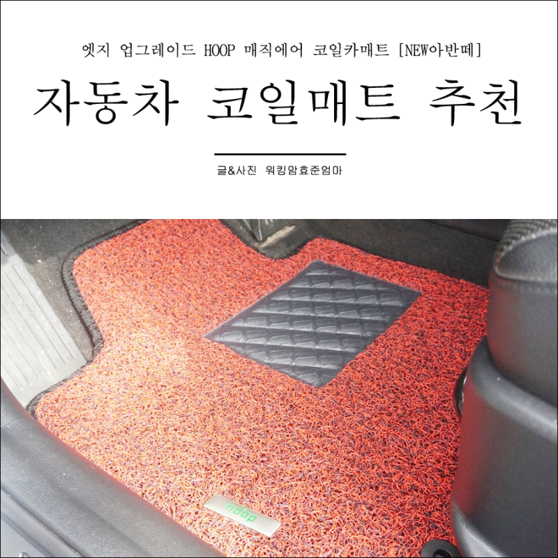 편리한 카매트 코일매트 청소 대박 후프몰 카매트 오늘 소개해드릴 제품은 제가 요즘 정말 유용하게 사용하고 있는 제품입니다. 디자인도 깔끔해서 많은 코일매트 중에서도 가장 독보적인 위치가 아닐까 싶습니다. 후프몰에서 판매하는 <매직에어카매트>입니다. 생각보다 만족도가 높아서 리뷰로 생생하게 남기고자 글을 쓰게 되었습니다. 쿠션성조차도 뛰어납니다. 두께 자체가 저가 자동차 매트와는 비교가 되지 않습니다.
