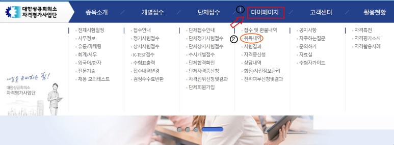 쉽게 취득한 자격증을 조회할 수 있고 또 다양한 자격 관련 정보를 얻을 수 있기 때문에 대한상공회의소 자격평가사업단 홈페이지를 방문하시면 큰 도움이 될 것 같습니다.