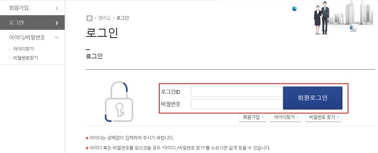 만약 아이디나 비밀번호를 잊어버렸다면 ‘ID검색’이나 ‘비밀번호검색’을 클릭해서 확인을 해보는 것이 좋습니다.