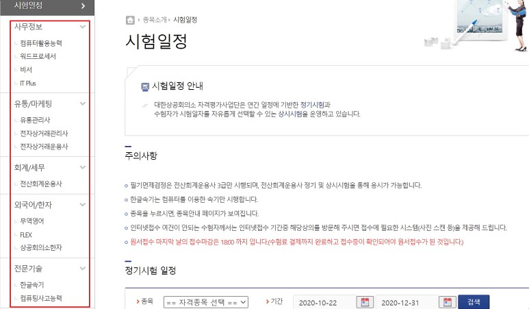 메인화면위의종목을소개하면컴퓨터활용능력부터유통관리사,전산회계운용사,무역영어,한글속기등다양한자격증을소개하고있습니다.