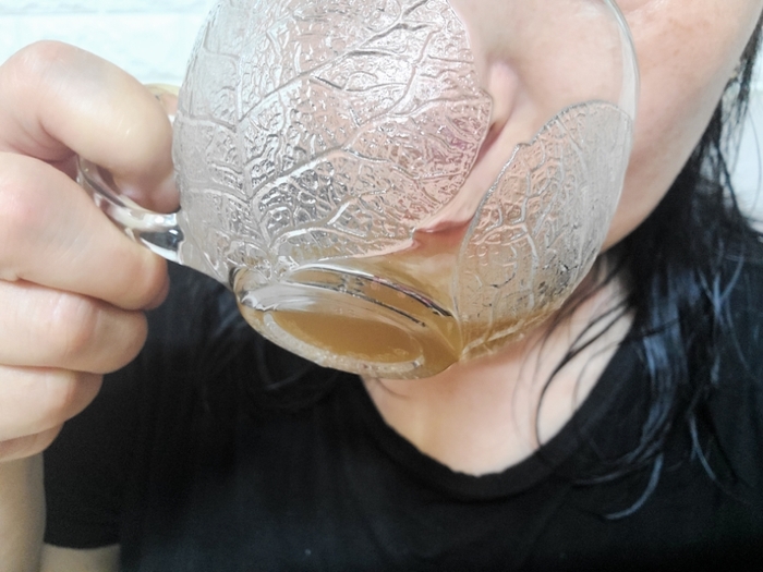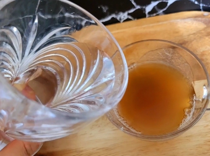 설명서대로 겨자즙을 유리잔에 붓고 1:1 비율로 생수를 부어 마셨습니다.