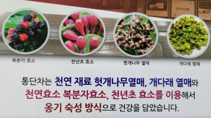 마타비 열매, 쪽파열매, 천연효소(복분자천년초), 복분자효소를 사용하여 1년의 숙성기간을 거쳐 천연재료 천연효소를 직접 비율로 배합한 통단차!