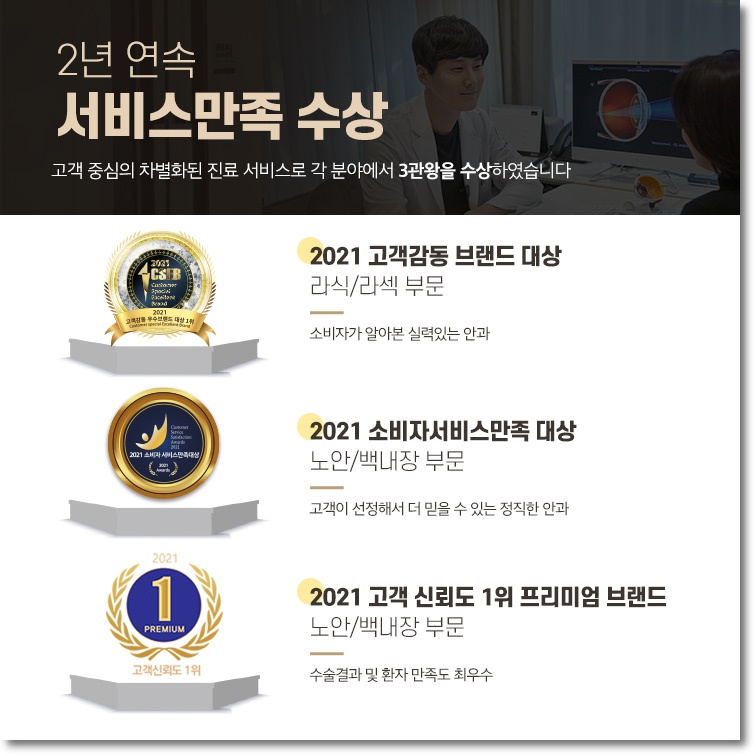 특히 본 병원은 하나의 렌즈만 고집하는 것이 아니라 다양한 렌즈 비교 및 개인별 라이프 스타일에 맞추어 다양한 종류의 렌즈를 환자들에게 안내하고 있어 환자 만족도가 높은 것으로 알려져 있습니다.