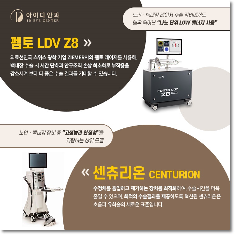 레이저 백내장 수술을 적용하면 의료용 나이프나 집도의의 기술로 시행한 기존 수술보다 안전성과 우수한 결과를 안내받을 수 있고, 펨토 레이저를 통해 빠르게 진행되는 만큼 원하는 패턴과 각도, 위치에 오차 없이 절개함으로써 조직손상 2차 감염의 우려가 있기 때문입니다.