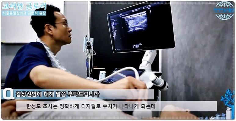 출처 : 아시아뉴스통신_코리안글로리방송중_서울유정갑외과김한석원장 본의원에서는 갑상선암에 대한 과잉진료를 중지하고 환자들에게 갑상선 해부학에 대한 충분한 지식설명과 갑상선세침흡입검사와 같은 침식적인 검사를 명확한 기준을 가지고 최대한 적게 하는 방향으로 이끌고 있습니다.