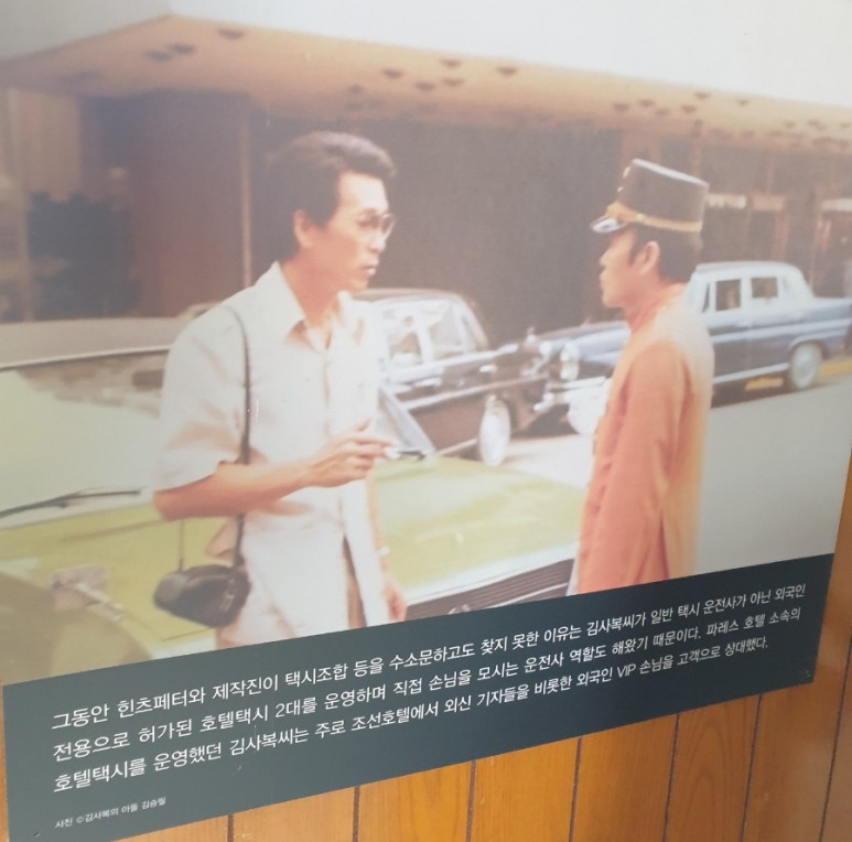 그동안 힌트페터와 제작진이 택시조합 등을 조사했는데도 찾지 못한 이유는 김사복 씨가 일반 택시 운전사가 아닌 외국인 전용으로 허가된 호텔 택시 2대를 운영하며 직접 손님을 맞는 운전사 역할도 해왔기 때문이다. 팔래스호텔 소속 호텔택시를 운영하던 김사복씨는 주로 조선호텔에서 외신기자를 비롯한 외국인 VIP 손님을 맞았다.