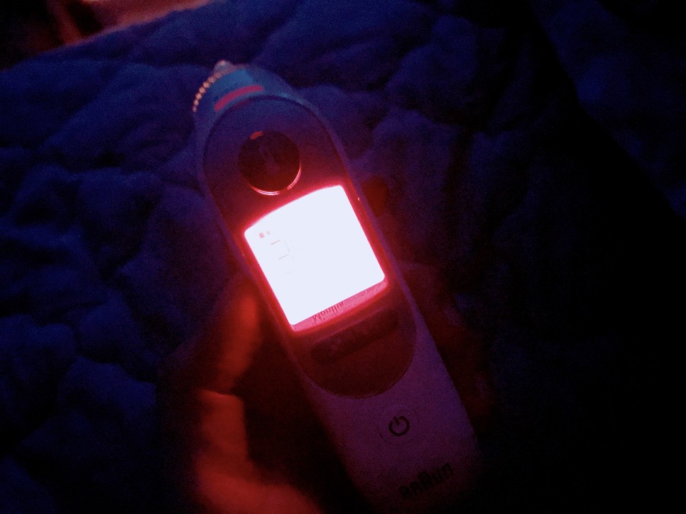 제발 그렇지 않기를 바라는 마음에서 브라운 체온계를 켜고 체온 측정을 하는데 37.8도였다