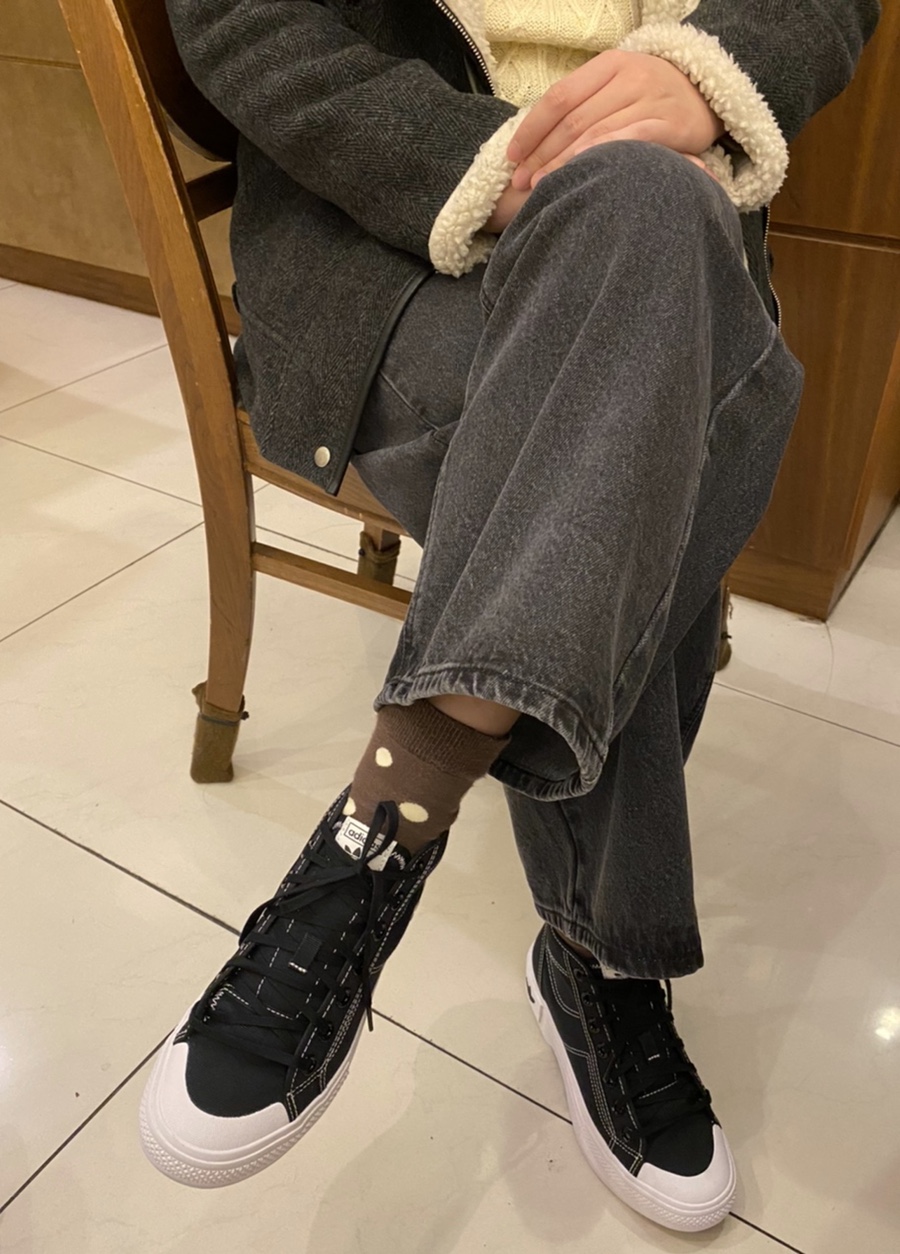 그냥 이렇게 안 접고 입어도 됐어요:) 요즘처럼 추운 날씨에는 패션도 중요하지만 보온도 중요하기 때문에 저는 이렇게 낮춰 입어요. 하하…