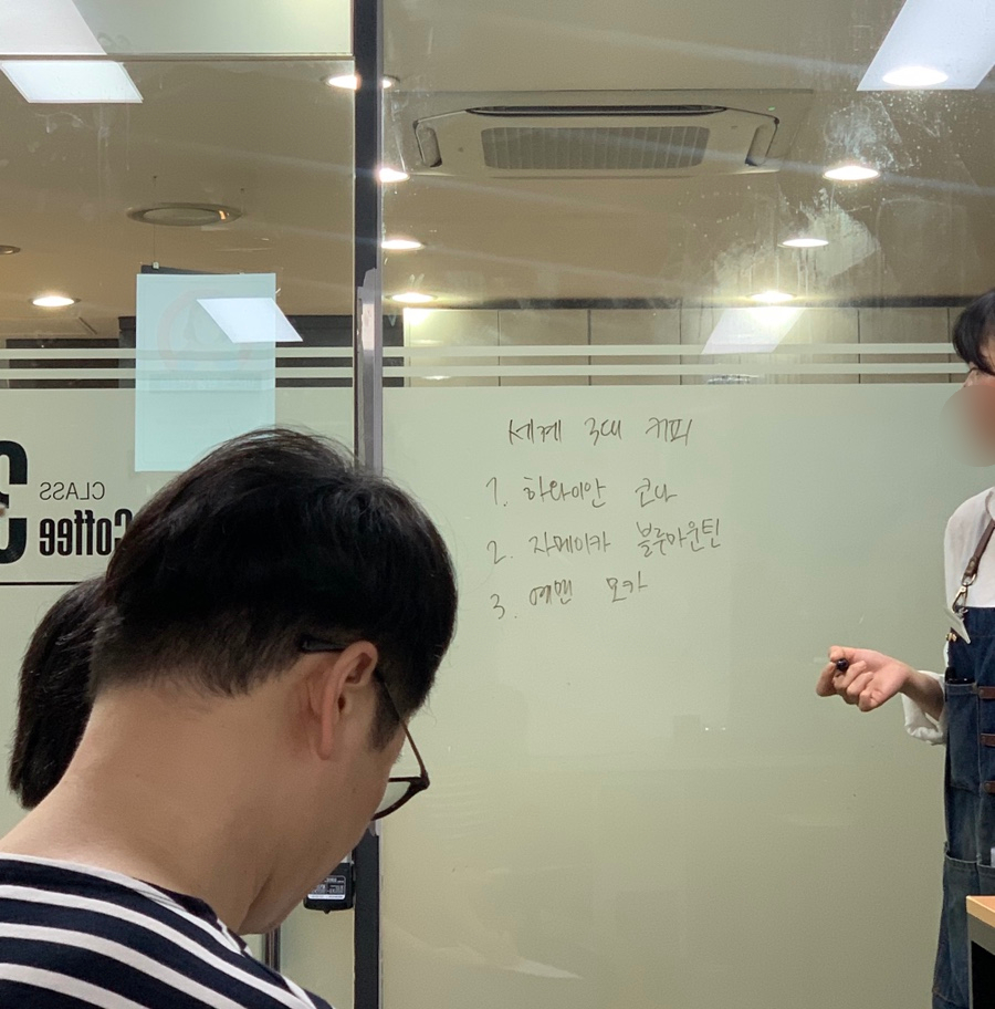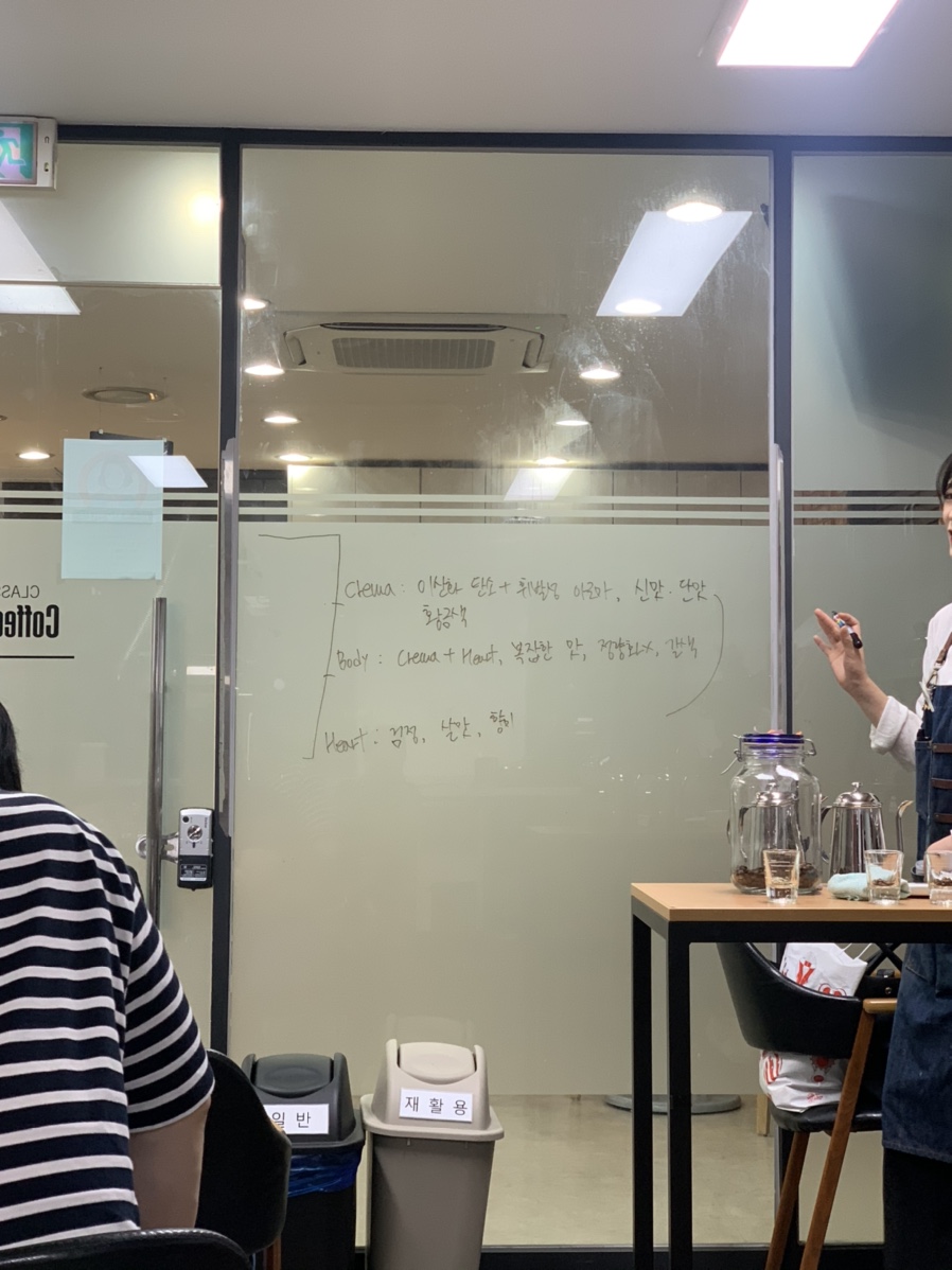 종로에 여러 바리스타 학원이 있는데 얼마전 베이킹 클래스를 하면서 여러 과정을 보다가 관심을 갖게 된 바리스타 수업의 직장인들도 할 수 있는 오후 6시 50분~오후 9시 50분의 수업이 있어서 이걸로 다녀왔습니다.결론적으로 선생님이 너무 좋아서 만족한 첫 수업! 첫 수업이라 이론 중심이었지만 이론 수업도 정말 중요하다고 생각했습니다.커피의 유래로부터 커피를 수확하는 과정, 로스팅은 무엇인지 등 평소에 궁금했던 다양한 커피에 대해 알아보는 시간이었습니다.그러면 자세한 리뷰를 써보겠습니다:)
