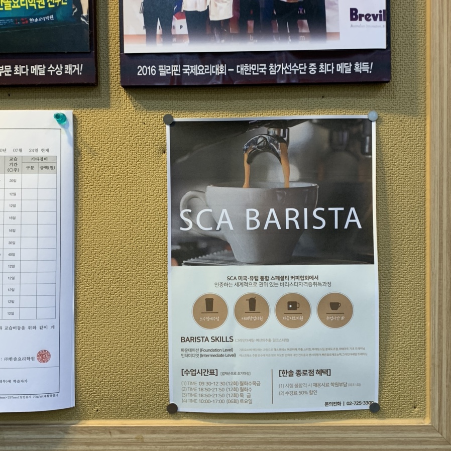 요즘 베이킹 클래스랑 바리스타 클래스 이것저것 퇴근하고 취미로 하고 있어요저번주에 한솔요리학원 종로점에서 SCA바리스타과정 수업을 체험하고 왔어요~
