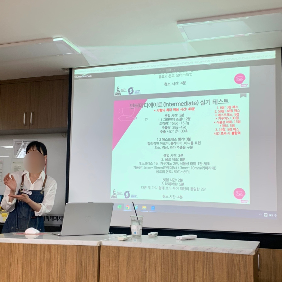 이게 제가 들은 학원 수업! 선생님께서 정말 유쾌하시고 이쁘셔서. *열정이 넘쳐서 첫 수업을 아주 즐겁게 들었습니다. ㅎㅎ 12회 정규 과정을 거치면 에스프레소 추출부터 라떼 아트까지 바리스타 자격증을 따기 위한 꼼꼼한 수업을 듣습니다.