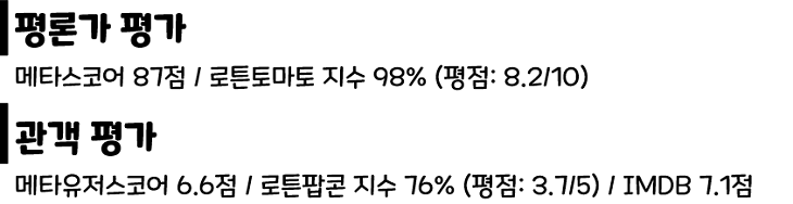 ※ 본 포스팅에서 사용된 데이터는 넷플릭스, IMDB, Box Office Mojo, Rotten Tomatoes, Metacritic 등을 참고한 것입니다.본 포스팅에 사용된 데이터는 3월 9일 시점입니다.