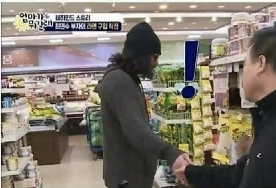 그리고 또 쇼핑을 하고 있는데 어떤 아저씨가 갑자기 와서 악수를 해 버렸을 때 최민수 배우는 당황하고 미리 요청 없이 급하게 잡아서 기분이 좀 상한 모습을 보인다.