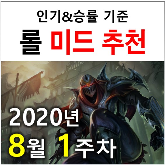 이상으로 2020년 8월 1주차 통계자료를 바탕으로 작성한 롤미드 추천챔피언 순위를 정리하여 알려드렸습니다.