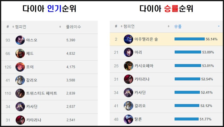 오늘 준비한 자리는 2020.8.1주차 통계자료 기준 티어별로 구분했다! 롤미드 추천 순위입니다.