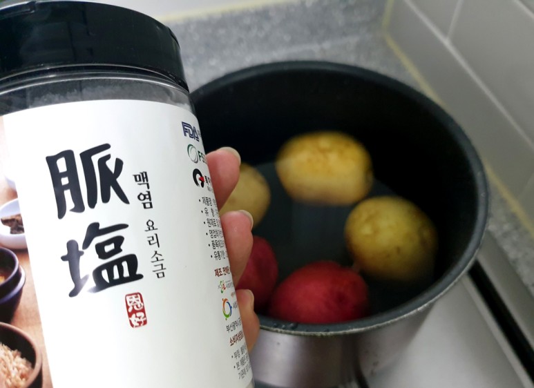 요즘 감자가 제철이라 푹신한 감자를 쪄서 먹을 때도 보리소금 요리 소금을 사용하는데요.감자에 맛이 붙어서 좋지만 아무것도 넣지 않아도 감자 본래의 맛과 짠맛으로 감칠맛이 더해져 더욱 맛있어지거든요.