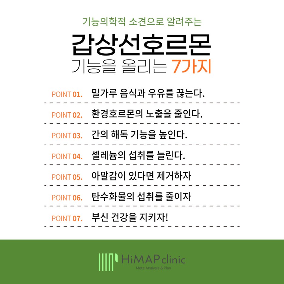 기능의학에서는 갑상선호르몬 수치가 정상인지를 보는 것이 아니라 갑상선호르몬이 세포에 들어가서 잘 작용하는지, 기능저하 증상이 있는지를 확인하여 정상인지 판단하여 그에 적합한 치료 방법으로 개선을 돕고 있습니다. 근본적인 원인을 개선하고 싶다면 경험이 풍부한 의료진과 상담해 보시기 바랍니다.