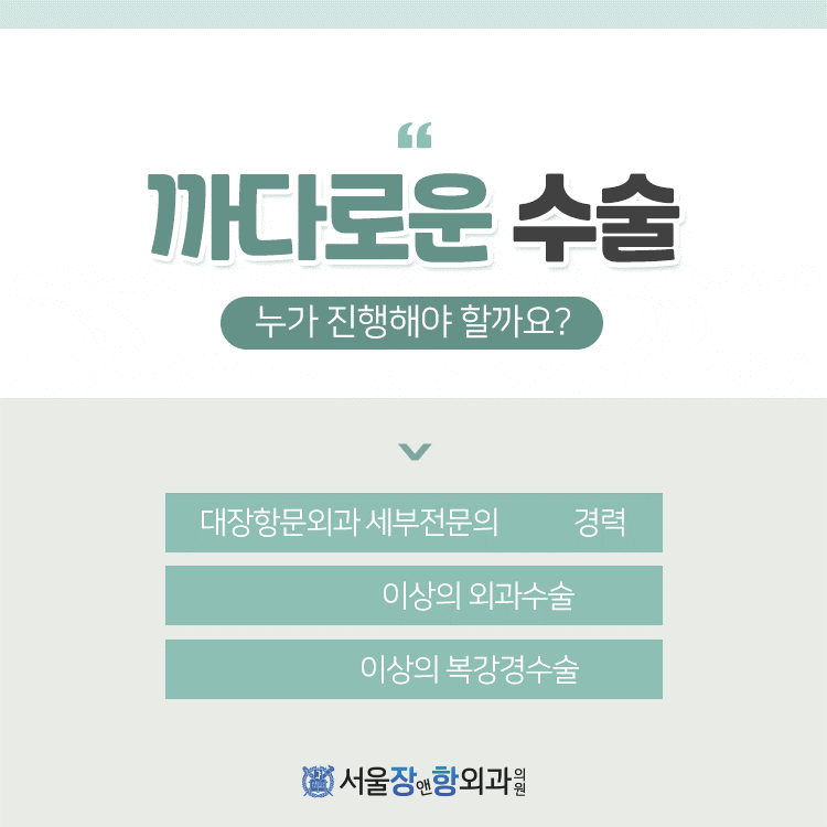이를 즉시 치료하지 못하고 방치하여 합병증이 나타날 경우에는 큰 수술로 이어질 수 있습니다. 이런 상황을 막기 위해서는 초기에 치료를 받는 것이 무엇보다 중요합니다. 따라서 자신의 사타구니를 살펴 전에 없던 혹이 만져지거나 불쾌한 통증이 동반된다면 대장항문외과 세부 전문의의 정밀 진단을 받는 것이 좋습니다.