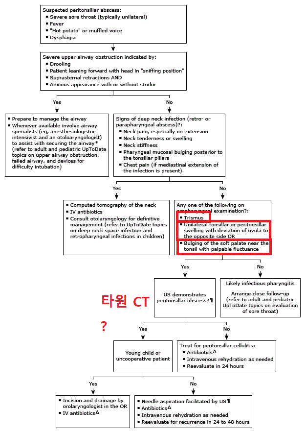<peritonsillar cellulitis or abscess(PTA) ?>