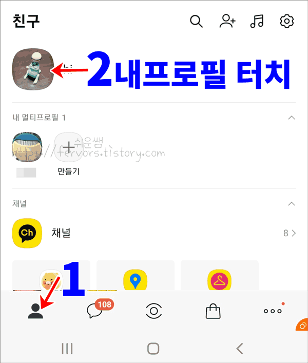 카카오톡 멀티 프로필 확인 방법 두 가지 다음으로 정상적으로 상대방에게 송출됐는지 확인하는 과정을 알아보자. 설정을 해도 본인에게는 가시적으로 달라진 것이 없기 때문에 정상적으로 설정했는지 궁금할 때 사용하면 된다.