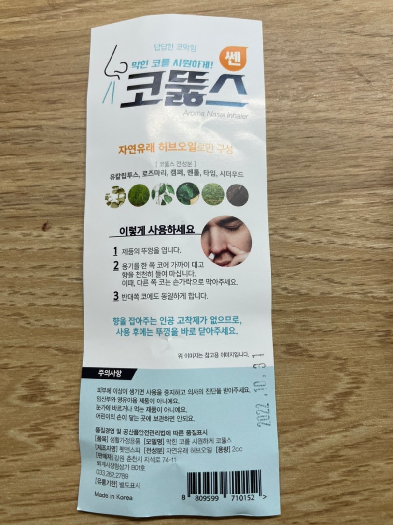 전문 아로마테라피스가 화장품 제조시설에서 직접 만든 코막힘 여는 방법 코막힘 이름도 정말 마음에 와닿네요 ㅎㅎ 임팩트 있는 이름만큼이나 사용에 매우 만족합니다. ^^