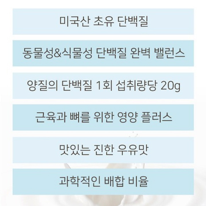 그런데 이 단백질 파우더가 네덜란드산 염소유 단백질 25%에 미국산 초유 단백질 2.5%에 복합동물성, 식물생단백질을 하루 24g 보충해주니까 유당불내증? 그 우유 소화가 잘 안 되는 분들에게는 정말 이만한 것도 없는 것 같아요.소화가 잘되도록 저분자 가수분해해서 분자량을 줄였다고 합니다~!