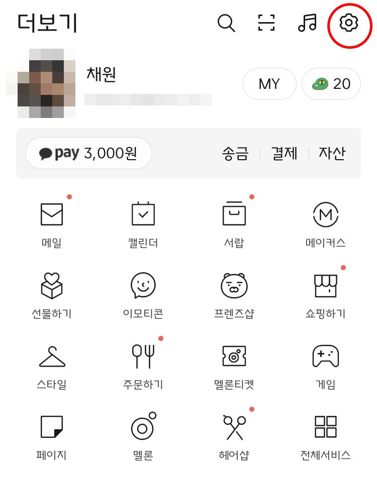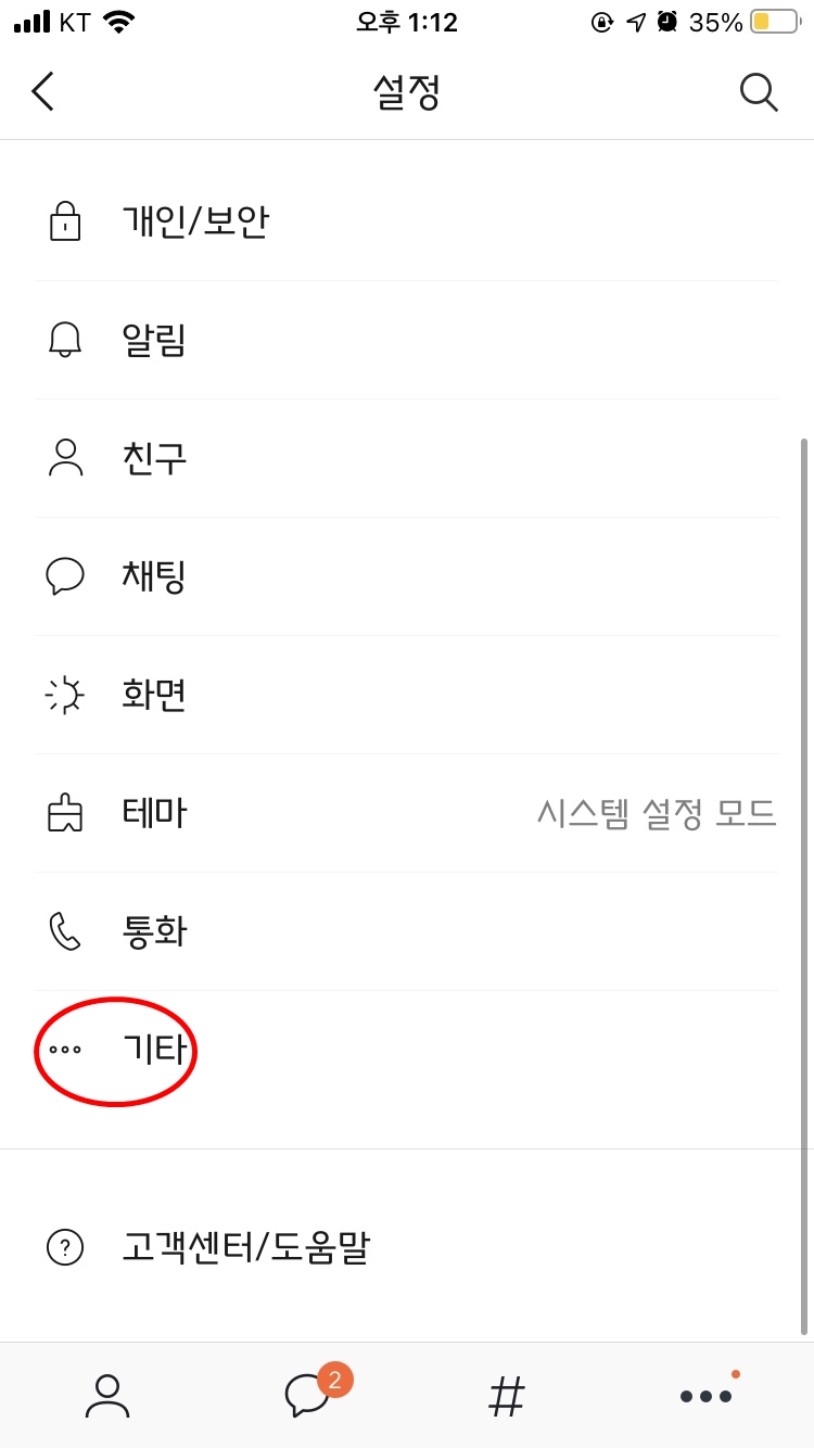 휴대폰 카카오톡 -> 설정