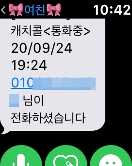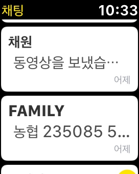 이것도 카톡이랑 비슷해!휴대 전화 메시지를 그대로 작게 하여 워치에 넣은 모습의 전화