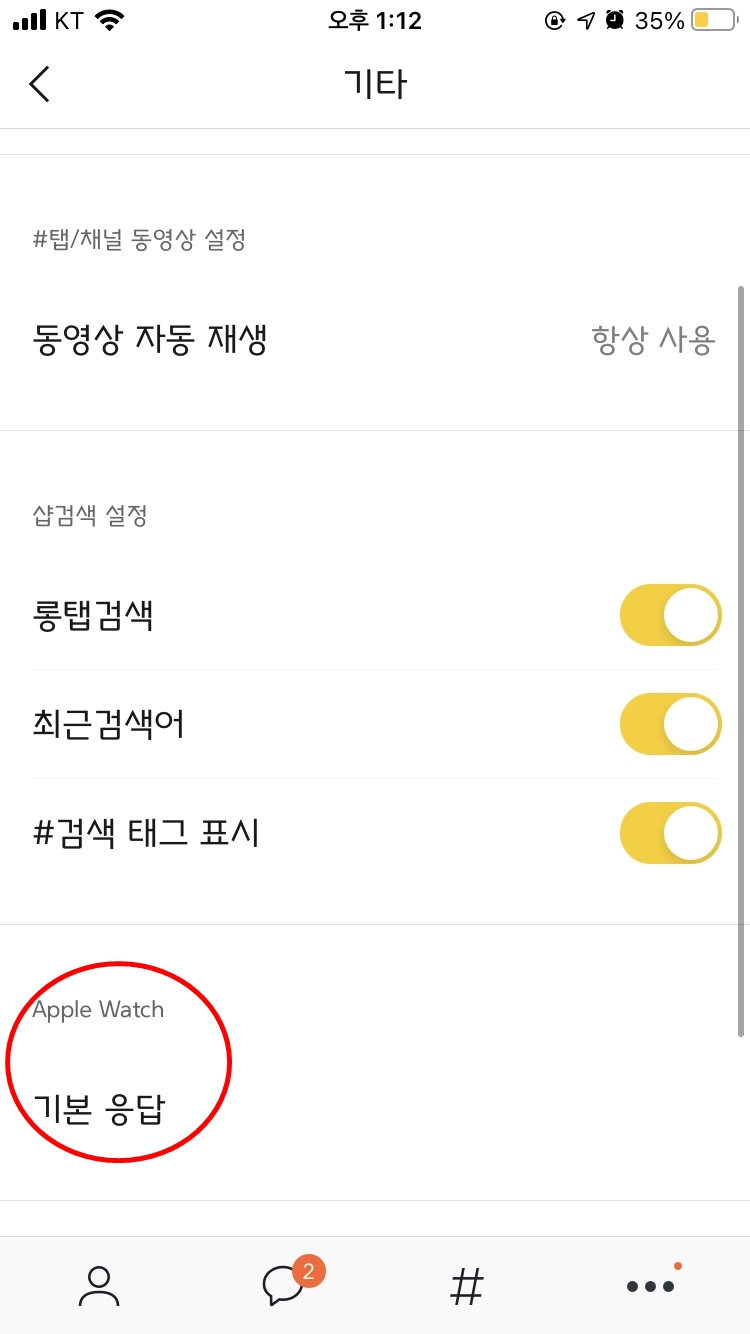 기타->애플워치 기본응답