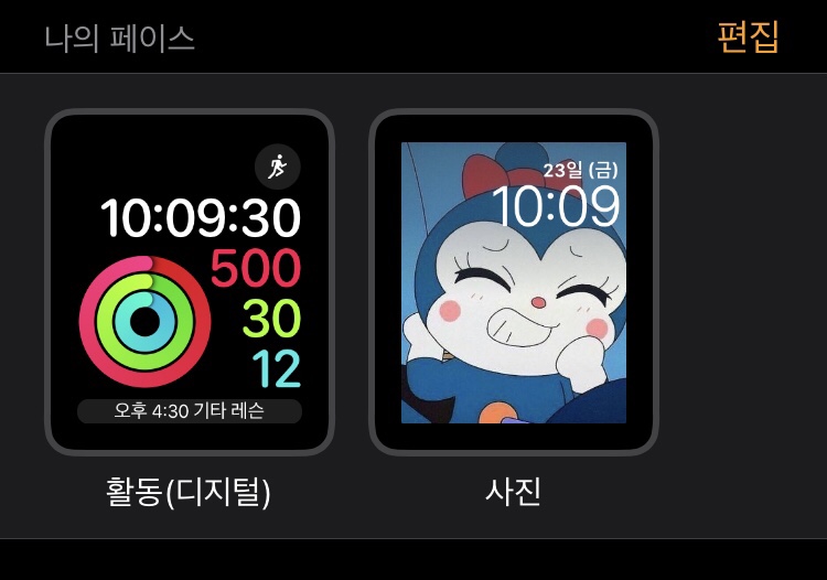 1시간 반 동안 이것저것 꾸미는 빈약한 모습으로 배경사진으로 만들었던 (^∇^) 배경화면 사진으로 바꾸는 것은 애플워치 -> 갤러리 -> 원하는 사진 3D 터치(누르기) 페이스 설정