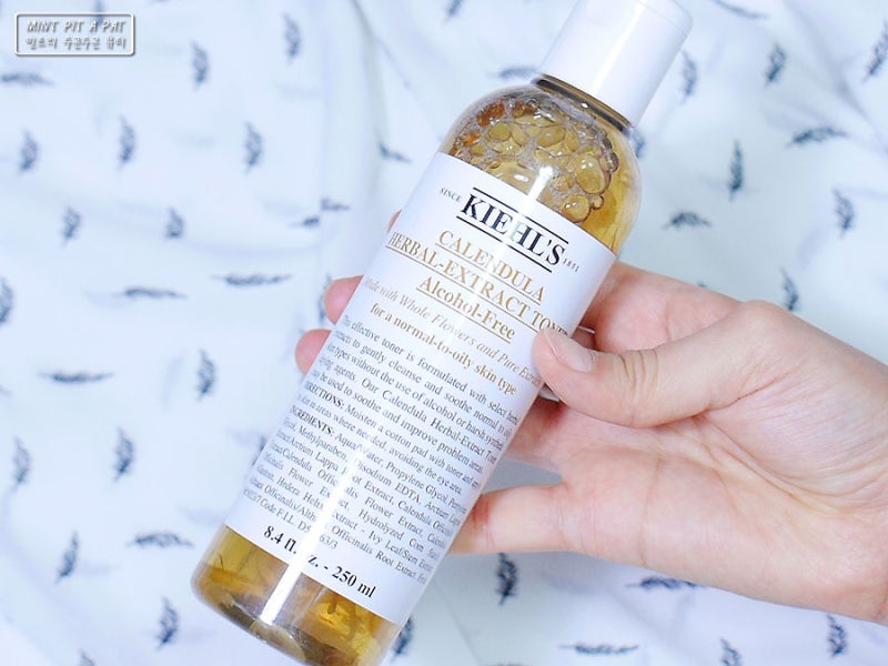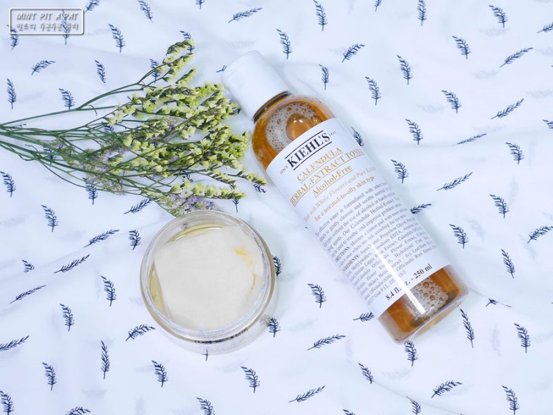 여름철 뜨거운 기온과 자외선, 외부 자극 등으로 거친 피부를 관리하는 데 좋은 제품이지만 저는 평소에는 그냥 닦아내는 데 사용했는데 이번에는 좀 더 자극받은 피부에 맞게 진정 관리를 하기 위해 토너 팩으로 사용하고 있습니다. 키엘 카렌듈라 꽃잎 토너는 지중해 연안에서 재배된 카렌듈라 꽃잎을 94장*그대로 넣었다고 하는데 특히 자극받은 피부나 통통한 피부 고민을 케어하는 데 도움이 되는 제품이라고 합니다. (* 250ml 기준)