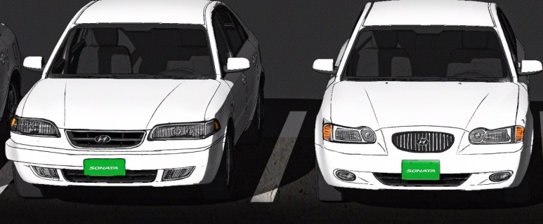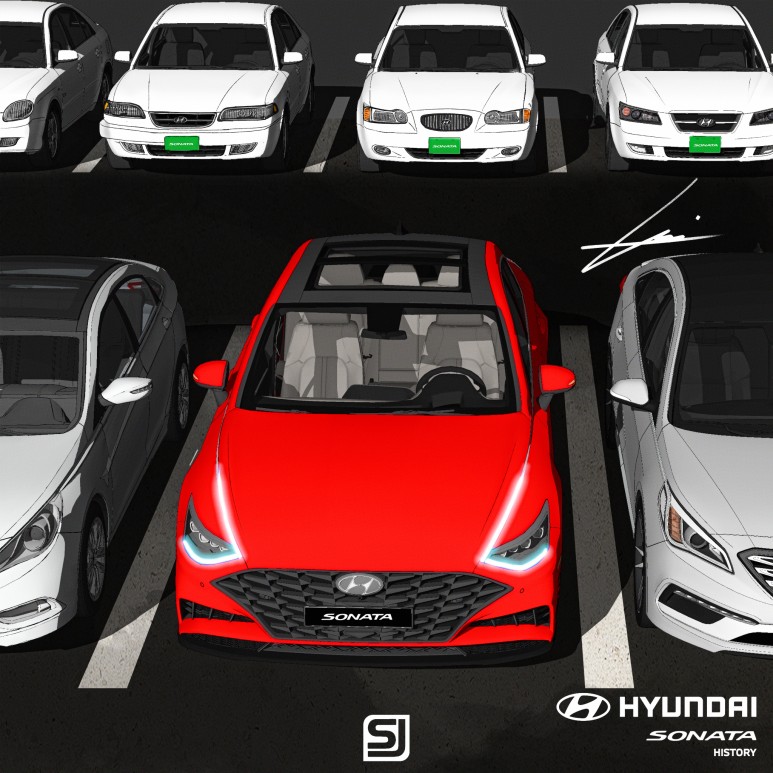 쏘나타 역사 일러스트 쏘나타 시리즈를 주차장에 주차한 모습을 컨셉으로 그림을 그려봤습니다.