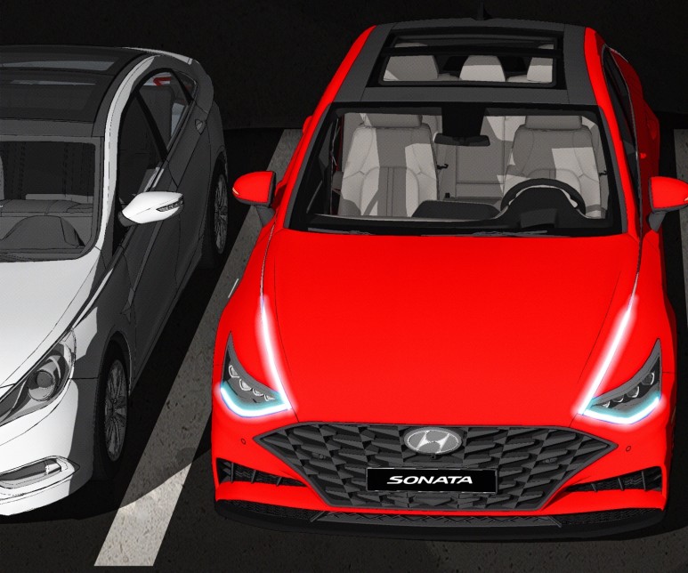 쏘나타 6세대 쏘나타 8세대 쏘나타 8세대는 n라인을 생각해서 색상을 레드에 넣어봤어요~ 디테일은 조금 떨어지지만 공허 전체적으로 잘 만들어진 그림인 것 같아요.
