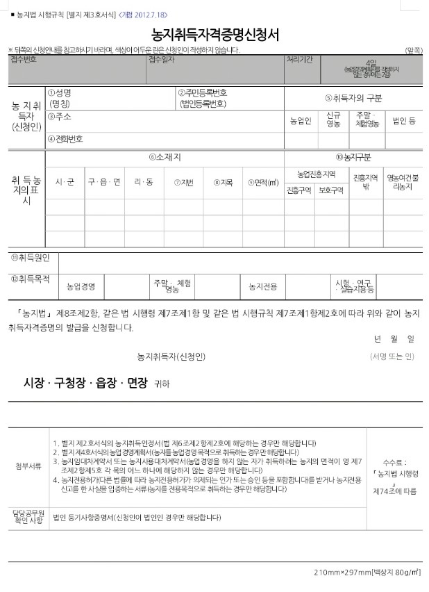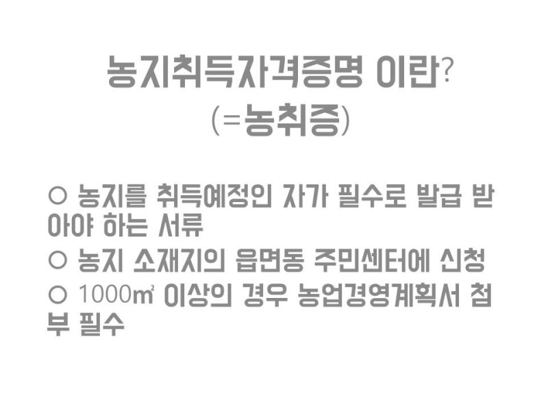그렇다면 농지연금을 받기 위해 기존 영농종사자는 특별한 준비가 필요 없는데 그렇지 않다면?5년의 영농 경력을 만들어야 합니다.농지를 인수하고 5년간 농사를 지어야 하는데 농지를 인수하기 위해 필요한 것은?농취증(농지취득자격증)입니다.농취증이라는 생소한 단어에 보통 어렵지만 농지 취득 자격 증명 방법을 알아봅니다.