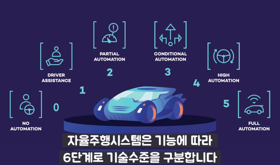 그리고 자동 운전 시스템은 기능에 따라 6 단계로 기술 수준을 구분합니다.*미국자동차공학회(SAE)에서 제시하는 기준