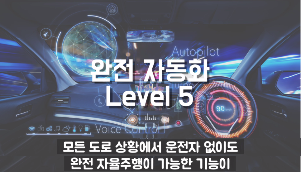 Level 5, 모든 도로 상황에서 운전 없이도 완전 자율주행이 가능합니다