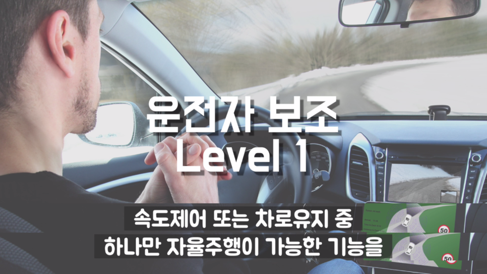 Level 1, 속도 제어 또는 차선 유지 중 하나만 자율주행 가능
