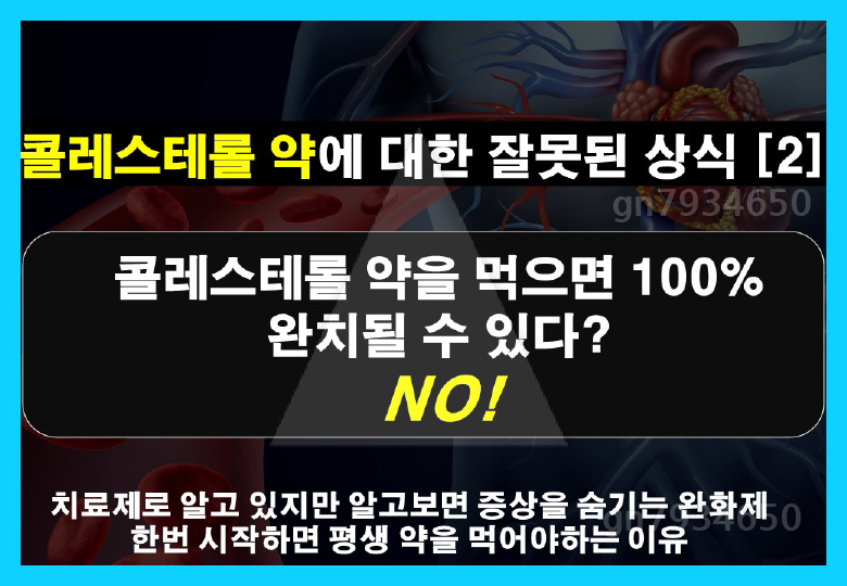오늘은 콜레스테롤 약을 먹으면 평생 먹어야 할지 말아야 할지 말씀드릴게요. 콜레스테롤 약이라고 하는 것은 고지혈증을 치료할 수 있는 치료제인 것입니까? 많은 분들이 치료제로 여기시지만, 사실 콜레스테롤 약은 치료제가 아니라 일시적으로 문제 증상을 완화시키는 완화제라고 할 수 있습니다.