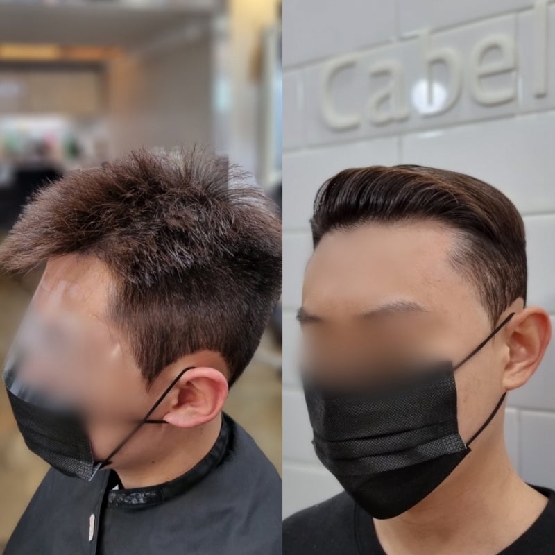고객님은 파주에서 오셔서 포마드펌 시술 받으신 분입니다.워낙 강한 직모라 뜨는 머리라서 2개월 주기로 파마를 하고 계신데요.이번에도 손질하기 편하게 파마하러 왔어요!옆, 뒷라인은 6mm 베이스로 컷팅하여 윗머리도 다듬었습니다.드라이건조만으로 세팅이 가능한 아이롱펌 시술을 진행할 예정입니다.