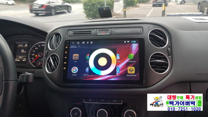 안드로이드 올인원 네비게이션 매립 후 모습입니다.장착된 제품은 모터스밸류 PX6 입니다 티구안 전용 제품으로 9인치 모니터입니다.라디오, 오디오, 음악, 동영상, USB, 블루투스, 핸즈프리 통화 모두 사용 가능합니다.