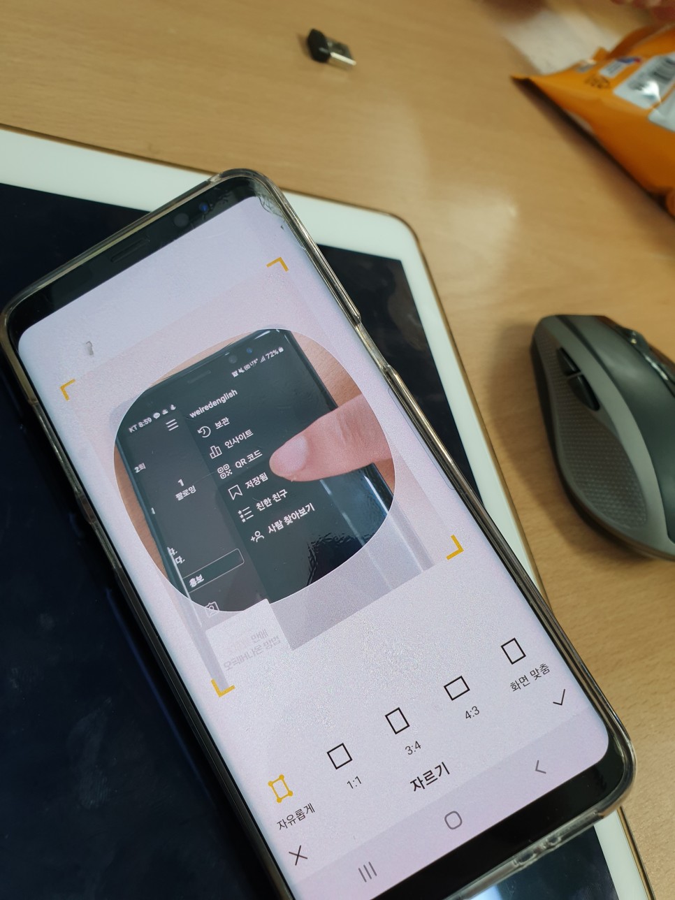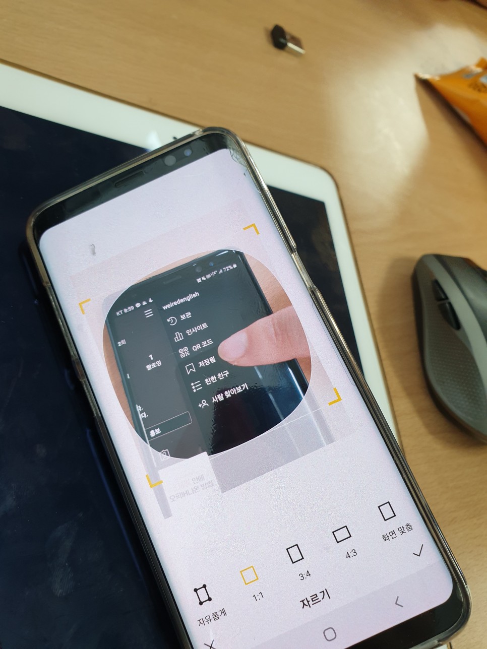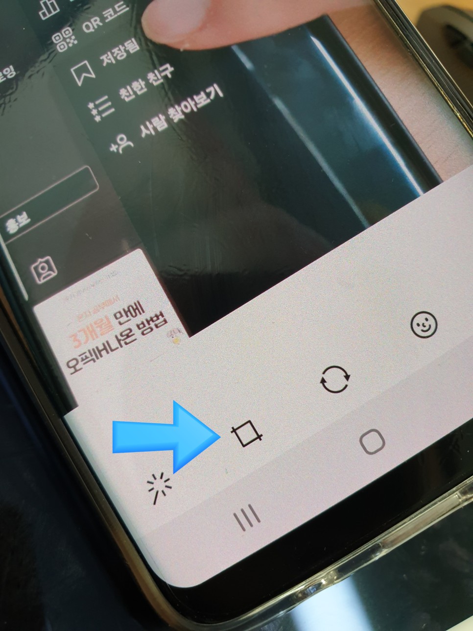 밑에 보면 메뉴가 있을 것 같은데 여기서 배경화면 화질? 같은 것도 바꿀 수 있고 회전도 할 수 있는데 크기를 조절하려면 위 사진이 보여 주는 ‘사각형’을 눌러 주십시오.