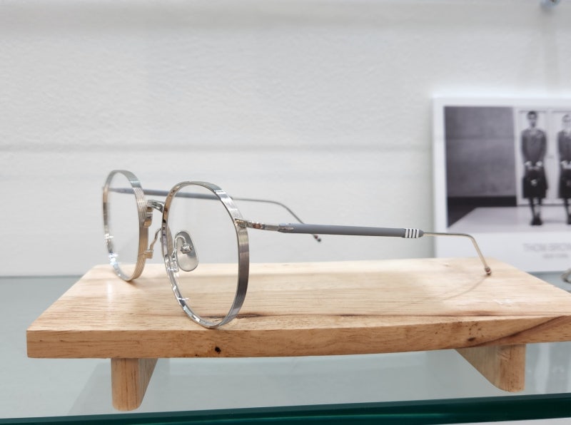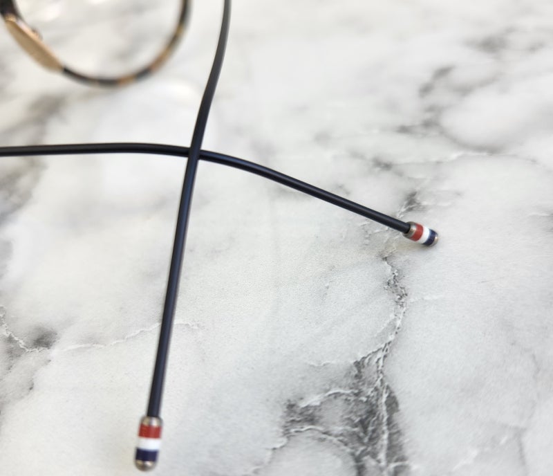 템플칩에는 톰브라운 시그니처 무늬가 코패드에는 톰브라운만의 넓고 튼튼한 티타늄 코패드가 들어있어요 템플(다리)이 얇아 약하고 잘 휘어지는 것을 걱정하시는 분들이 계시지만 걱정과는 달리 튼튼하고 안정적인 착용감을 선사합니다:D