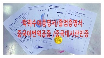 학위수여증명서, 중국대사관 인증, 중국어번역공증대행(중국취업허가신청서류) 교원자격증, 범죄수사경력회보서, 졸업증명서,
