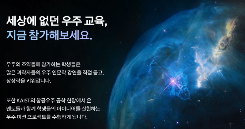 ‘우주의 조약돌’의 모든 프로그램은 한화스페이스 허브에서 전액 비용을 부담하며, 모든 과정을 수료한 학생들은 KAIST 총장 수료증 및 영재교육원 수강권, 전문가와의 1:1 진로 컨설팅 등의 혜택도 추가로 제공할 계획입니다. 부디 한화스페이스허브의 이번 우주영재 육성 프로젝트를 통해 우리나라 우주산업을 책임질 인재들이 많이 육성되었으면 합니다. 그럼 이만 모두 행복하세요.:)
