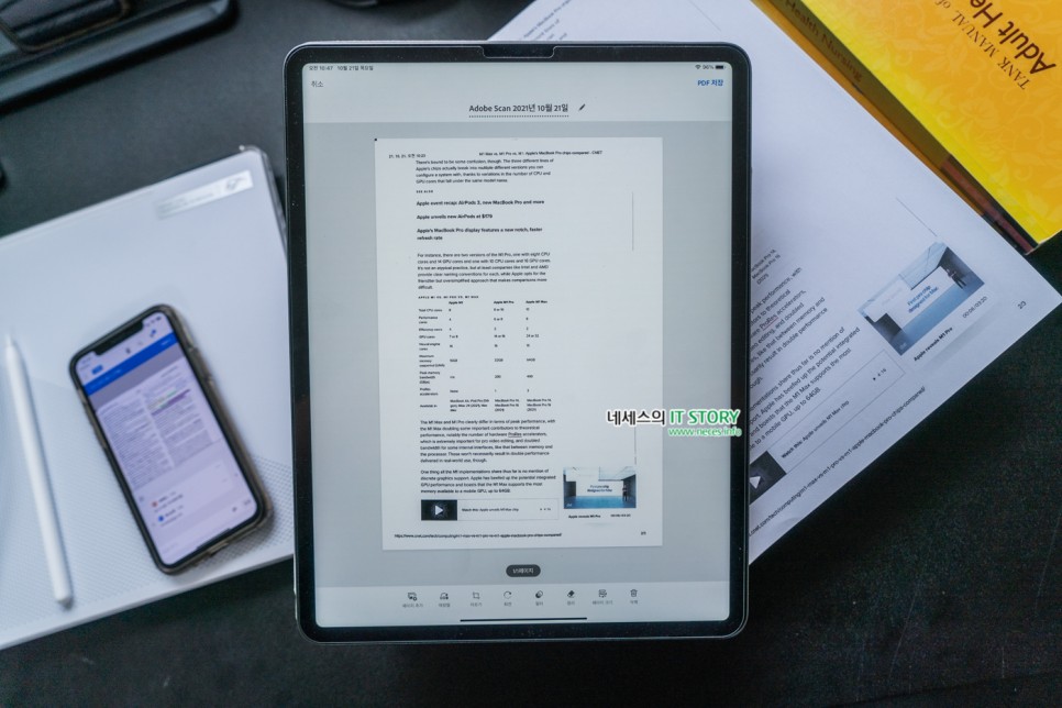그리고 Adobe Scan 앱을 이용하면 스마트폰 카메라로 사진을 찍어서 바로 PDF에 저장할 수 있습니다. 이것을 활용하면 책이나 자료 등을 종이에 가지고 다니지 않아도 되고 파일로 저장해서 휴대할 수도 있습니다. 전공책만으로도 무게가 상당하지만 파일은 무게가 없기 때문에 가볍게 휴대할 수 있습니다.