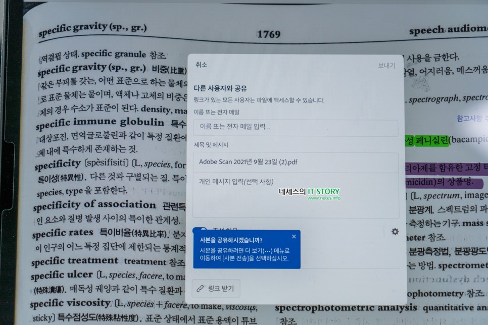 메일로 공유를 해봤습니다. 이메일에 이렇게 공유 링크가 전송되고 링크를 클릭하면 자동으로 공유된 PDF로 연결됩니다.