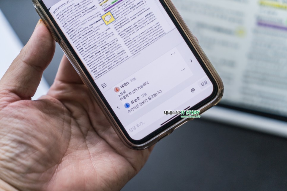 그러면 공유를 받은 사람도, 공유한 사람이 작성한 주석을 확인할 수 있고 추가로 주석을 넣을 수도 있습니다. 주석을 넣으면 자동으로 표시되므로 공유된 사용자가 누가 추가로 주석을 추가했는지 실시간으로 확인할 수 있습니다. 서로 피드백하면서 하나의 프로젝트를 더 효율적으로 진행할 수 있습니다.