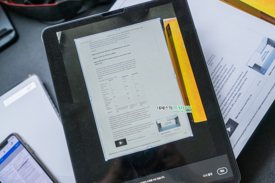 사용 방법은 매우 간단합니다. 어도비 스캔 앱으로 좋아하는 페이지를 촬영합니다만, 자동적으로 문서를 인식해 촬영을 합니다. 계속해서 페이지를 추가할 수도 있고, 자동적으로 사이즈를 보정까지 할 수 있습니다. 아마 사용해 보면, 극히 간단하게 스캔 되어 PDF로 변환할 수 있는 것을 확인할 수 있다고 생각합니다.