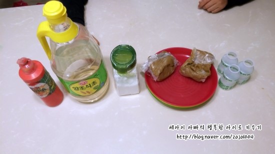 오랜만에 과학실험에 즐거운 사과가 열심히 만들어주고 있는 모습입니다.