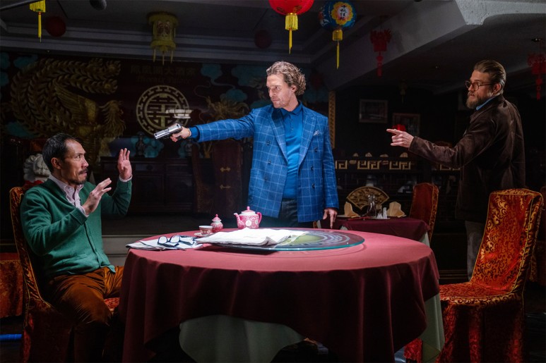 우선 내용은 영국 갱 마약왕의 액션 영화다. 액션 영화라니, 우스꽝스러울 것 같지는 않지만, 이곳은 훌륭한 연출이다. 꽤 늙고 억울한 일을 겪은 휴 그랜트가 탐욕스러운 기자로 등장하는데, 이 기자가 마약 조직을 찾아가